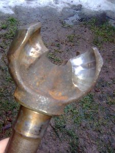 To bude urcite ocel,je to vykovok.Je to z Rumunskeho Ara,stare tak 30 - 40 rokov,predna poloos.Myslim ze vtedy Rumuni moc specialne veci nemohli mat,takze to by nemal byt nejaky zazrak.Ked sa z toho robili malotraktory,tak sme to pri skracovani zvarali elektrodou na navaranie zubov na bagre a drzalo to.Len to bolo namahane na krut a tu je to vymackavane tlakom.