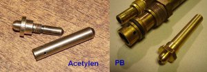 Už jsem to tu psal, jakej je rozdíl. http://www.svarforum.cz/forum/viewtopic … 210#p50210 Upravit to (převrtat, vytočit nový nebo vyrobit vložku) by šlo. Díra v PB injektoru je 0,75mm. Acetylen má kupodivu podobnej (nebo stejnej) rozměr. Vyhrabal jsem starý poznámky z doby pitvy (původně jsem zde totiž uvedl uvedl že acetylen má menší díru), a v rámci přesnosti měření dříkem vrtáku je to plusmínus stejný - vrták 0,7 projde s vůlí, vrták 0,8 neprojde. Prostě PB injektor je jen kus mosazi s dírou, acetylenovej je dvojstupňovej.![]()