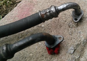 potrebujem vyriesit takyto problem na mojom aute - vid obrazky. auto je talianskej proveniencie, teda podla toho aj vyzera konstrukcne riesenie... nova hadica stoji 100 - 120 E ( to je pre mna prilis luxusna cena ), druhovyroba sa nerobi, nie su momentalne dostupne ani vrakove. zohnal som si podobnu z ineho typu v celkom dobrom stave ale ma inak otocenu koncovku. zakazkove hadice s tymito O-kruzkovymi nasuvackami mi zrejme nik nevyrobi, tak by som to chcel nejak pokombinovat. oba porty na chladici su dobre. trochu mali vyzrate kraje, tak som ich znizil 2 mm a o tolko aj odpilim z rurky, kedze stale je tam nejaka rezerva v dlzke. skrutky boli v hliniku total zazrate ale tyzdnovym macanim v odhrdzovaci a nahrievanim pekne pustili bez poskodenia zavitov.